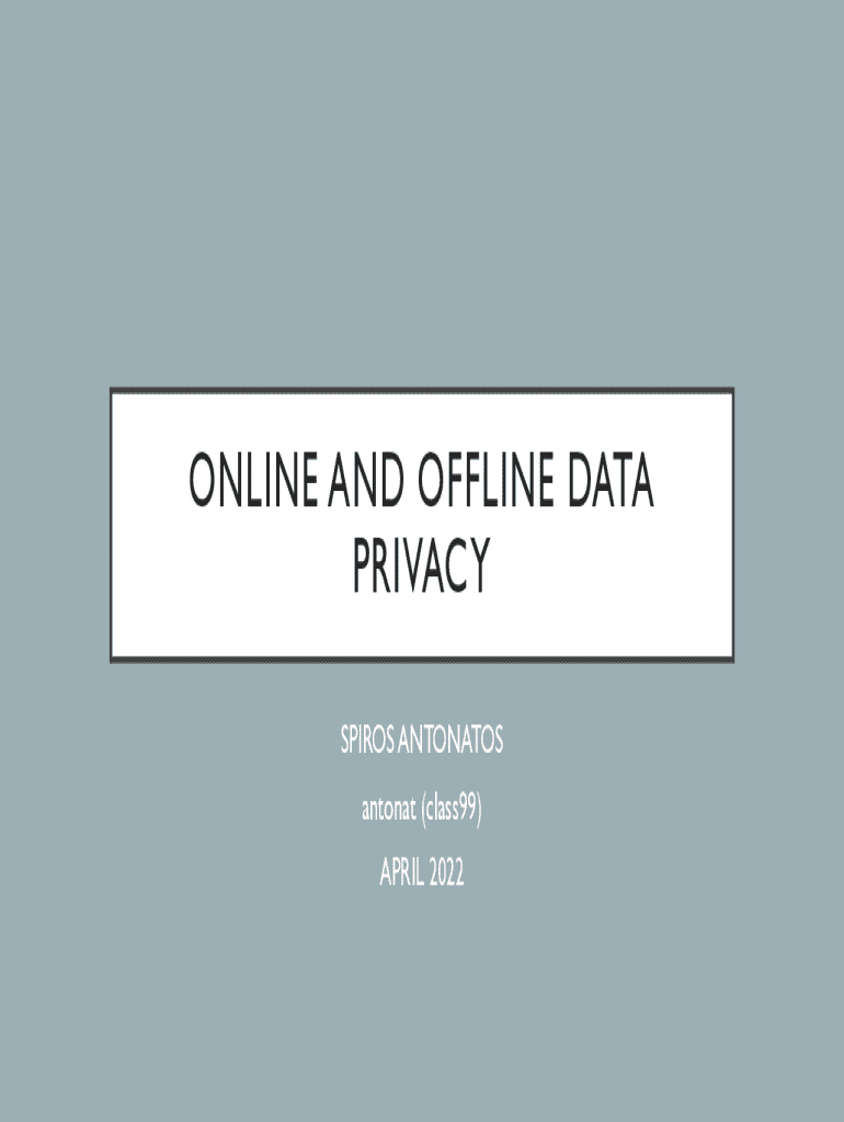 ONLINE AND OFFLINE DATA PRIVACY SPIROS ANTONATOS antonat (class99) APRIL 2022DEFINITION OF PRIVACYa state in which one is not observed or disturbed by other people the state of being free from public