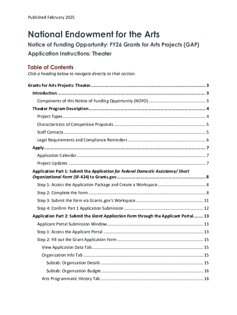 Get the free Notice of Funding Opportunity: Fy26 Grants for Arts Projects (gap)