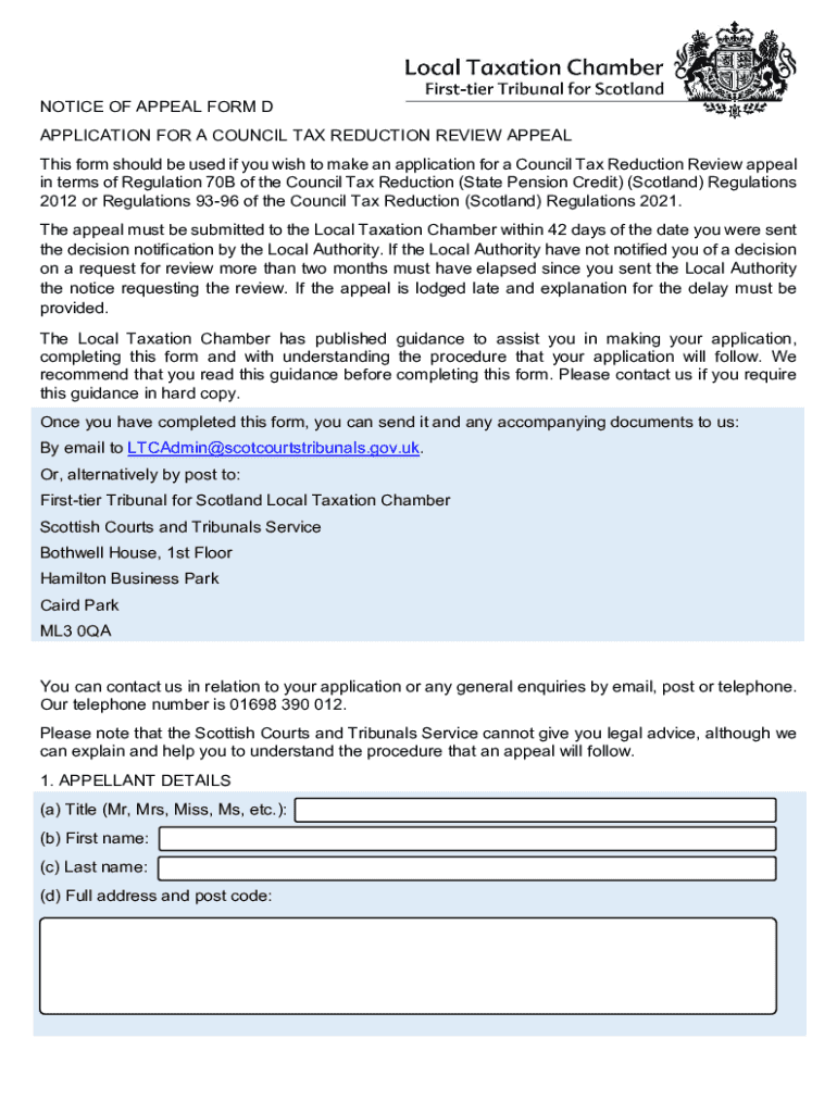 Este formulario debe utilizarse si desea presentar una solicitud para una apelación de revisión de la reducción del impuesto sobre el consejo de acuerdo con la Regulación 70B de las Regulaciones
