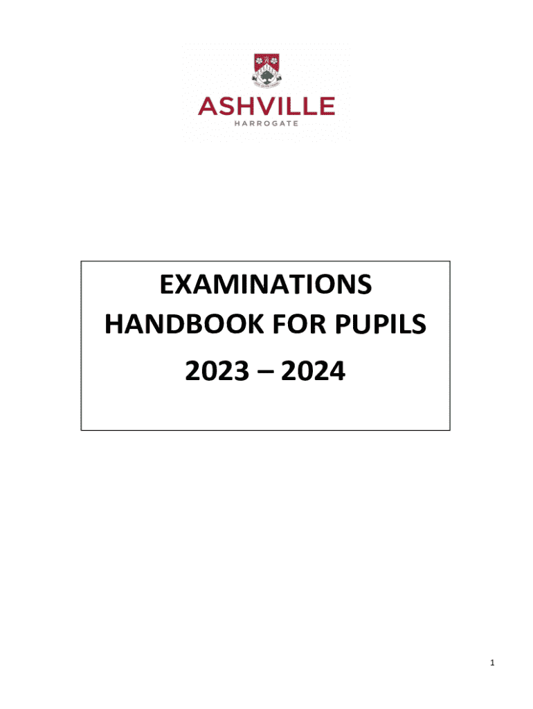 This handbook provides essential information regarding the exam and assessment process at Ashville, including regulations, timetables, contact details for the Exams Office, and instructions for candidates