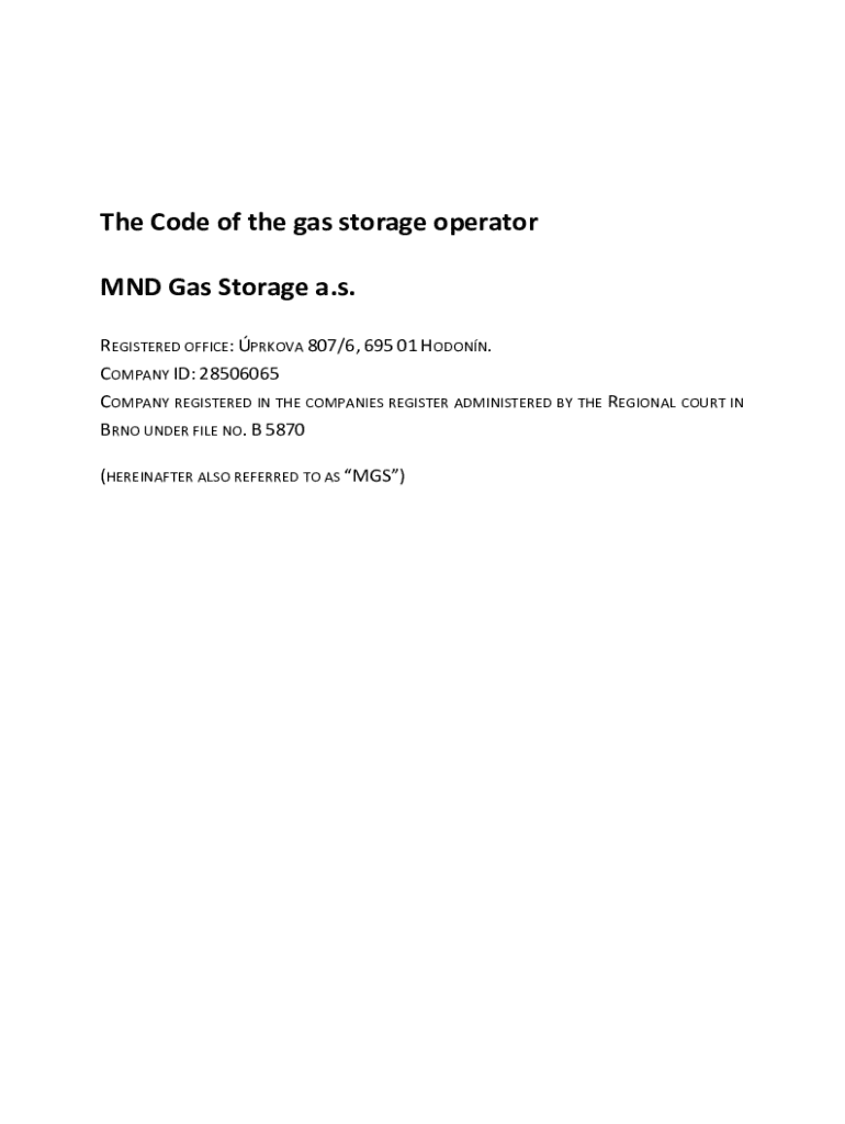 This document outlines the terms and conditions under which the MND Gas Storage a.s. provides gas storage services, including definitions related to gas storage, procedures for storage capacity reservation, obligations of both the storage operator and users, invoicing practices, and final provisions.