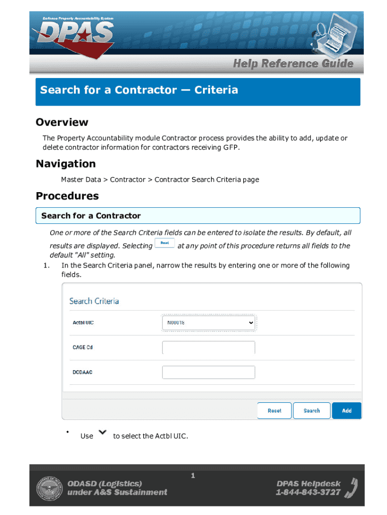 Search for a Contractor Criteria Overview The Property Accountability module Contractor process provides the ability to add, update or delete contractor information for contractors receiving GFP.Navigation