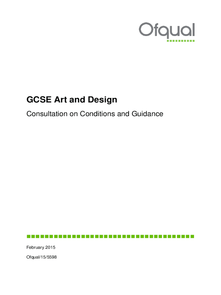 This document outlines the consultation process for the regulatory requirements set to be implemented for new GCSEs in Art and Design, scheduled for introduction in September 2016. It provides details on assessment arrangements, conditions of recognition, and guidance on assessment objectives, inviting feedback from stakeholders through specified response channels.