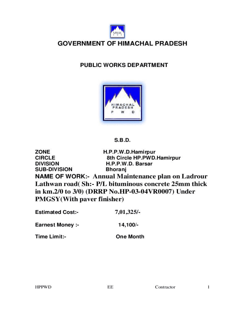 This document contains details related to the tender for the Annual Maintenance plan on Ladrour Lathwan road, including project descriptions, estimated costs, necessary documentation, submission requirements, and qualifications for contractors.