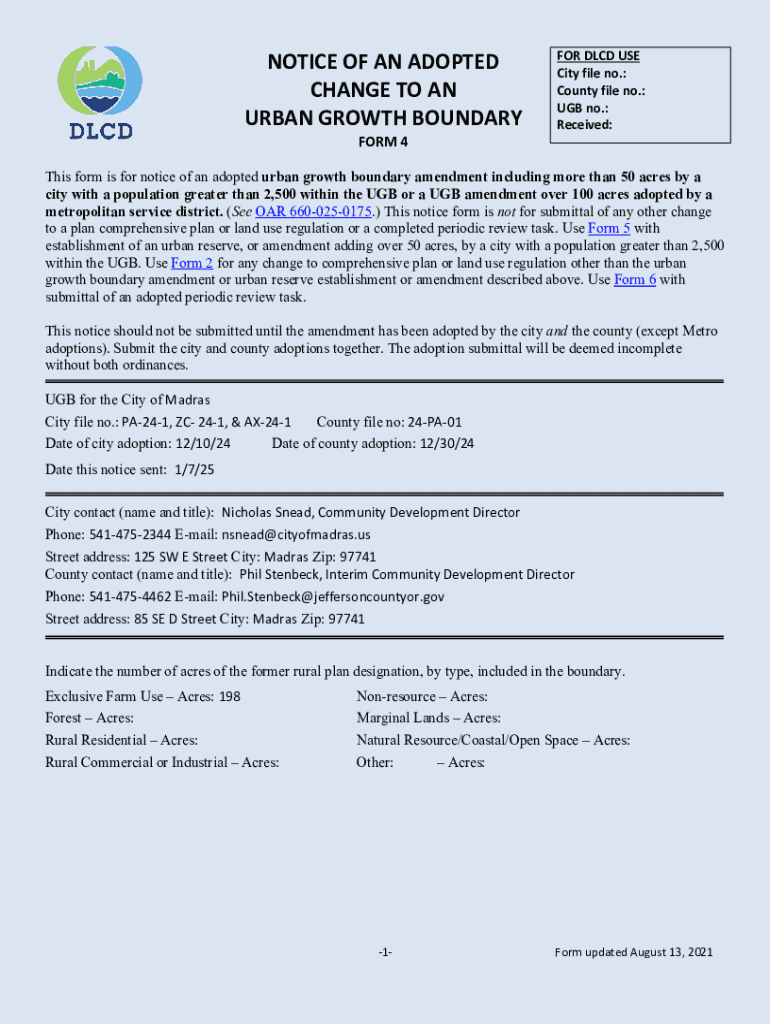Get the free Notice of an Adopted Change to an Urban Growth Boundary Form 4
