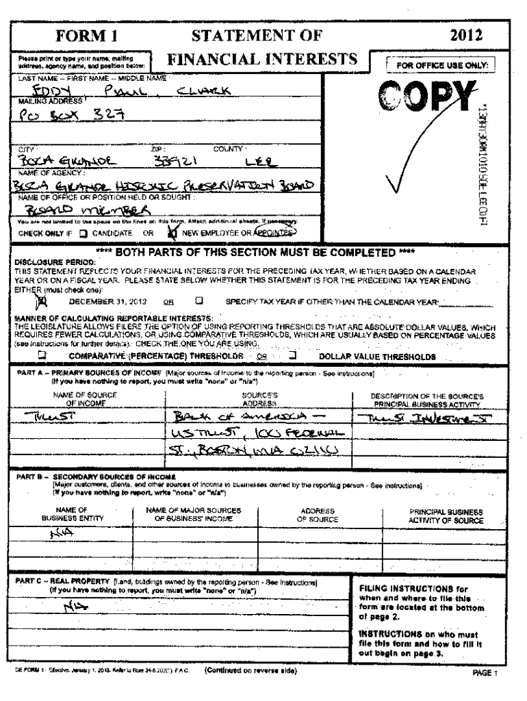 STATEMENT OF I FINANCIAL. INTERESTSFORM 1 Please print or type your nine, Mailing address, agency name, and position bektw:2012 IFOR OFFICE USE ONLY:LAST NAME FIRST NAME MIDDLE NAMEef:003/4.\"4 MAILING ADDRESS )ec.S.c..KC 1,..APACK.v,,A.A.L.\"p41S2 ZIP :CITY : latkat ela004,0._ NAME OF AGENCY :itCOUNTY0 1.01#4_3i3el2,1mets..400.0/4 issegu,WCA 410,51a... PAISUAtC, NAME OF OFFICE OR POSITION HELD OR SOUGHT :m m r) trA 11