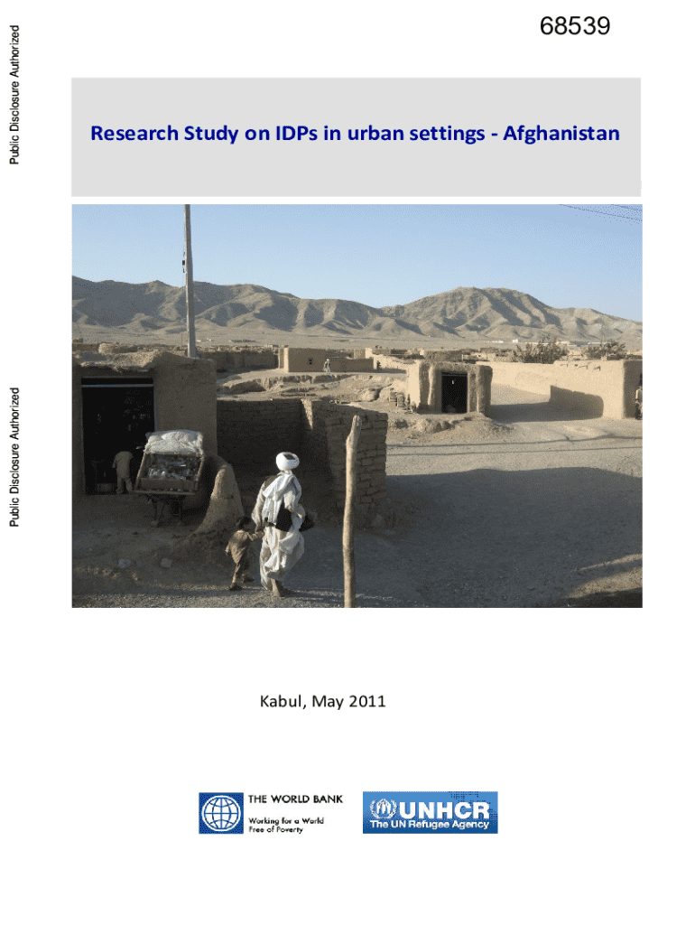 Public Disclosure AuthorizedPublic Disclosure AuthorizedPublic Disclosure AuthorizedPublic Disclosure Authorized68539Research Study on IDPs in urban settings AfghanistanKabul, May 2011All rights reserved.