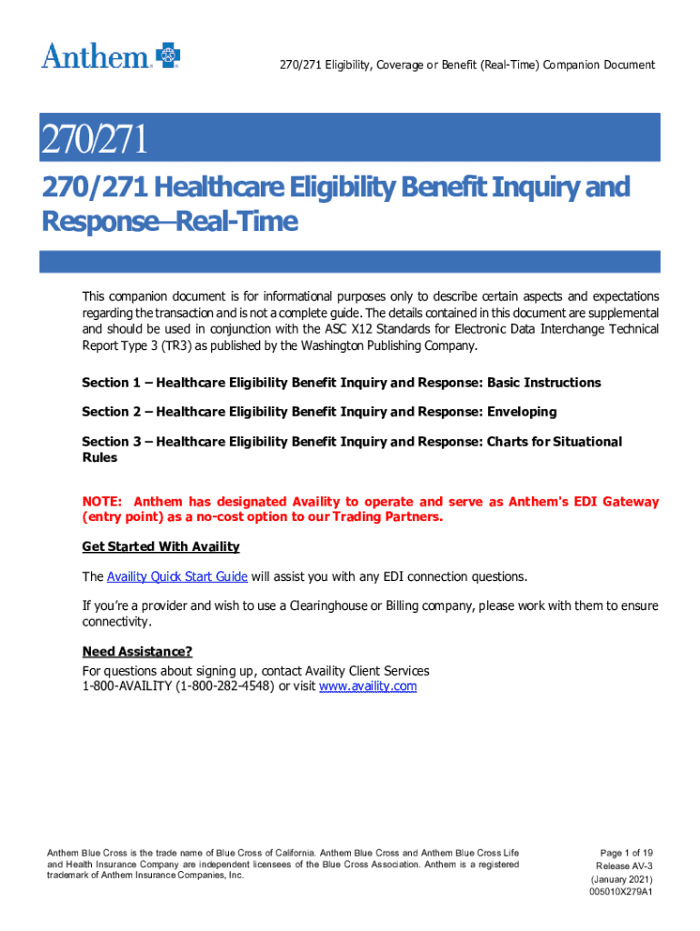 Get the free 270/271 Eligibility, Coverage or Benefit (real-time) Companion Document