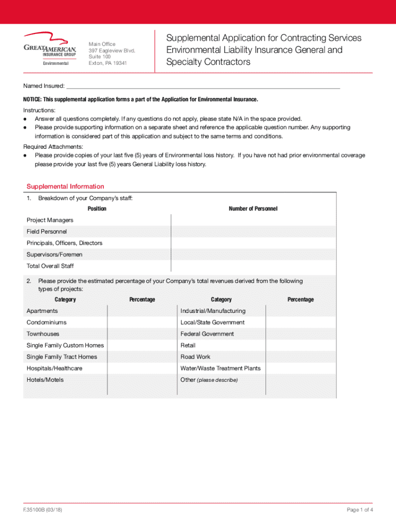 Get the free Supplemental Application for Contracting Services Environmental Liability Insurance