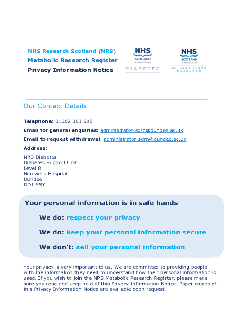 Get the free Nhs Research Scotland Metabolic Research Register Privacy Information Notice