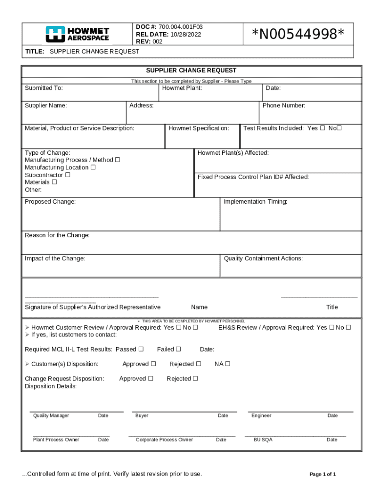 Frequently asked questions about the form Supplier Change Request