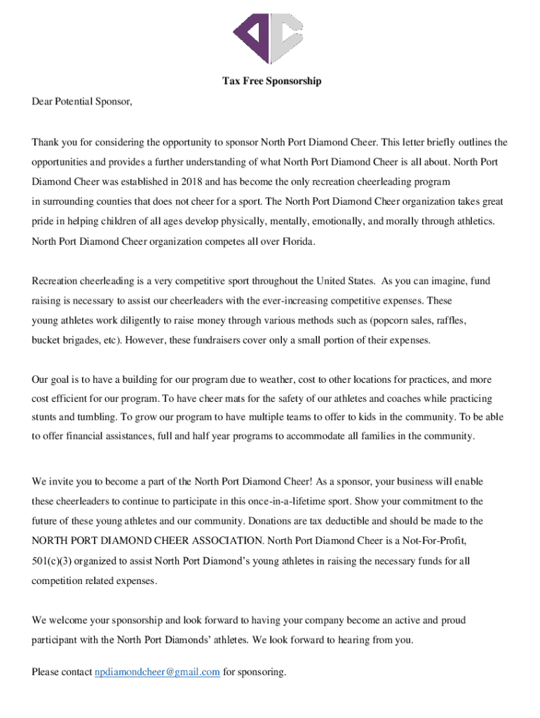 Get the free North Port Diamond Cheer Sponsor Form