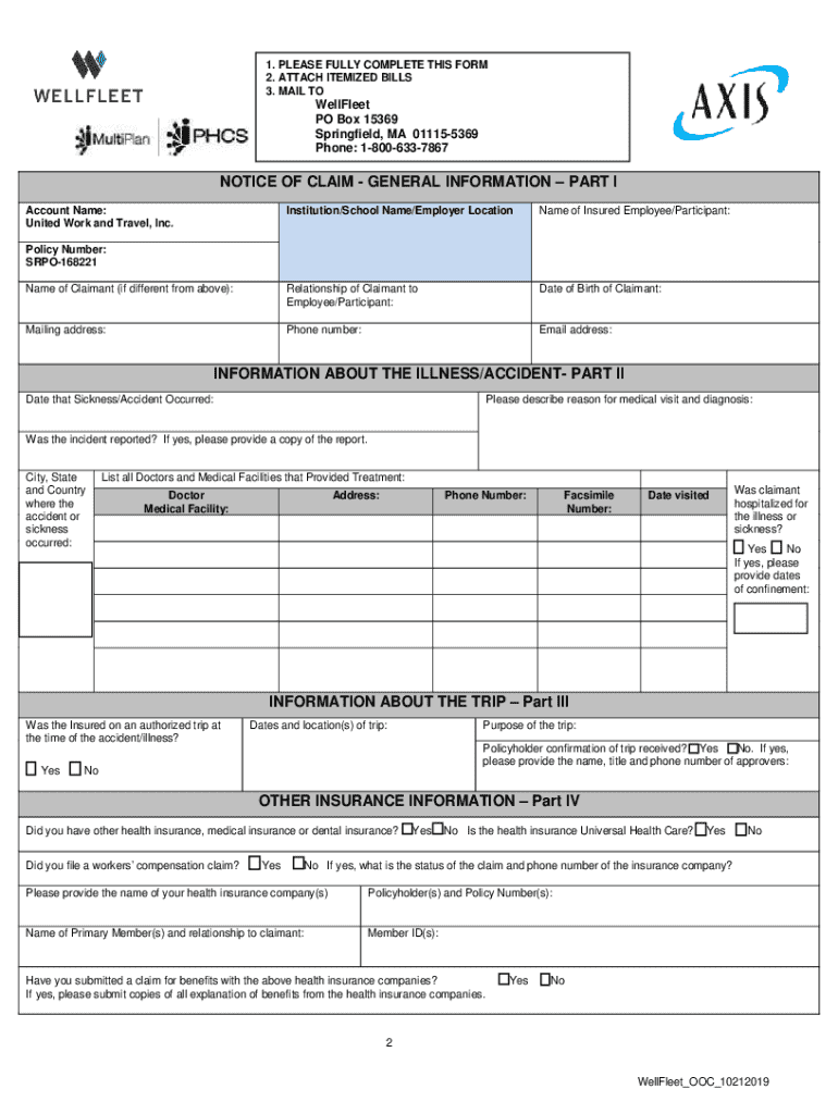 This document provides a detailed procedure for claimants to file a medical claim, outlining steps for submission, required information, and instructions on the completion of various sections of the