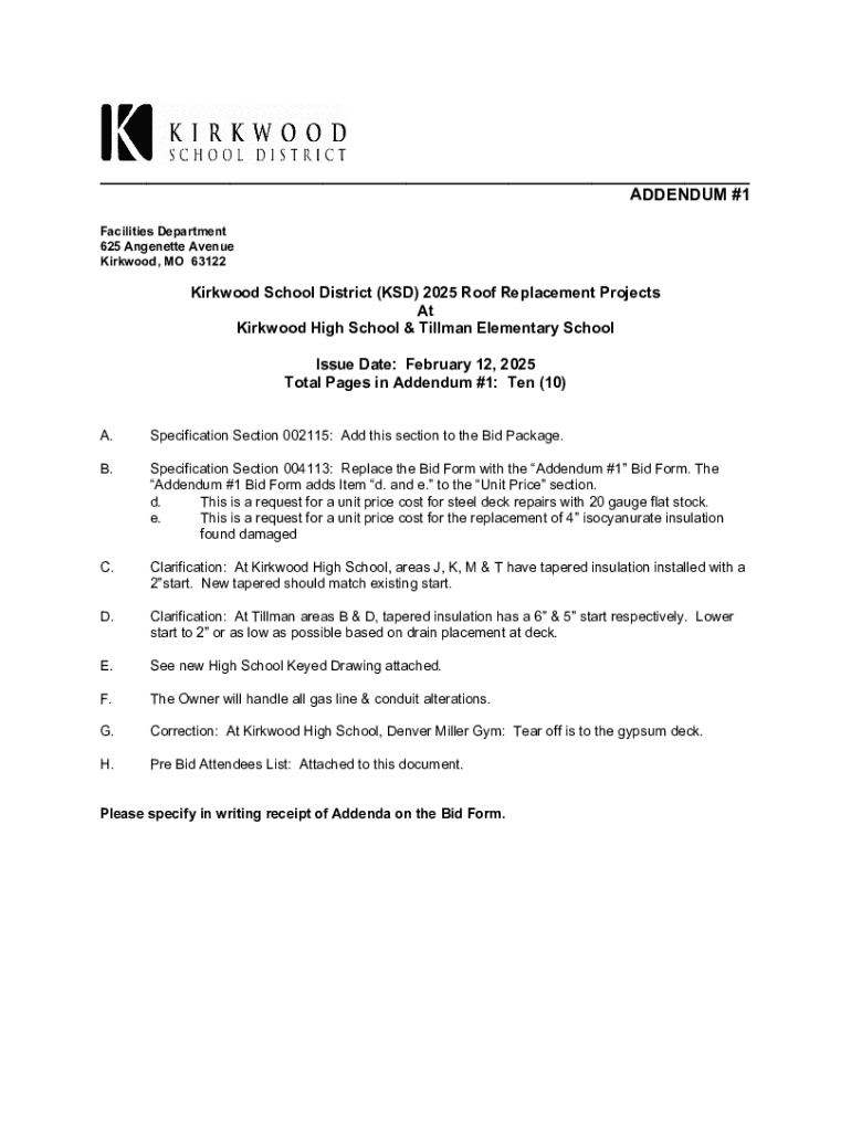 Get the free Ksd 2025 Roof Replacement Projects Addendum #1
