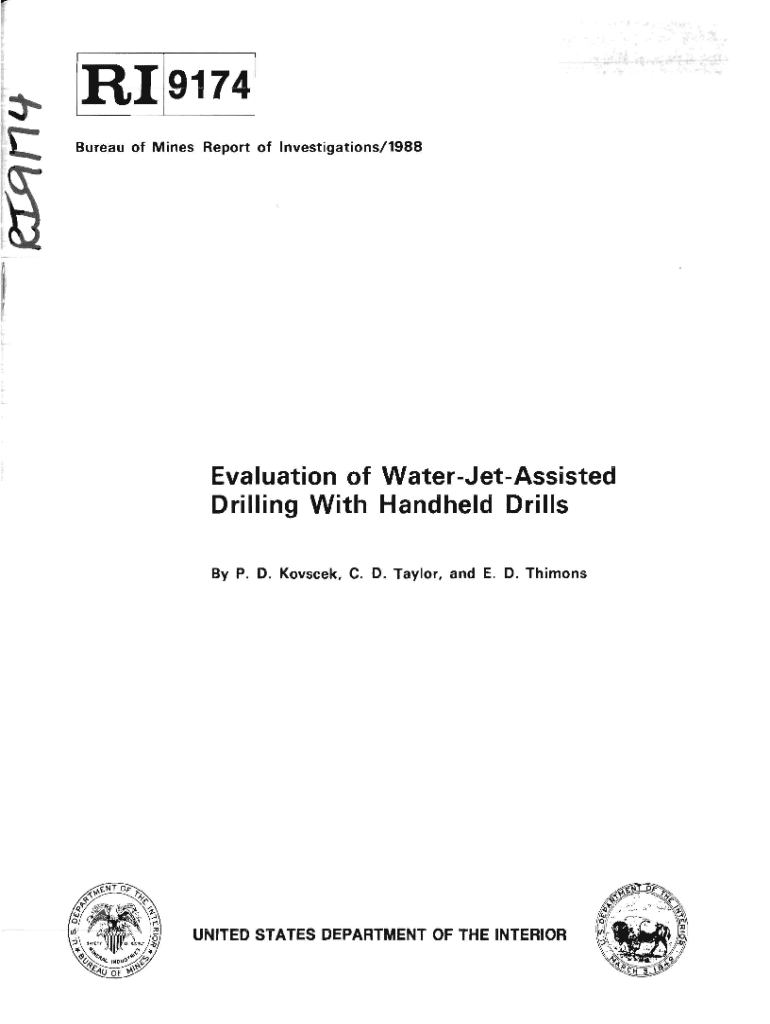 Este informe del Bureau of Mines examina el rendimiento de un taladro rotativo de bajo empuje asistido por chorro de agua utilizado en operaciones de perforación. Se evaluaron tasas de perforación