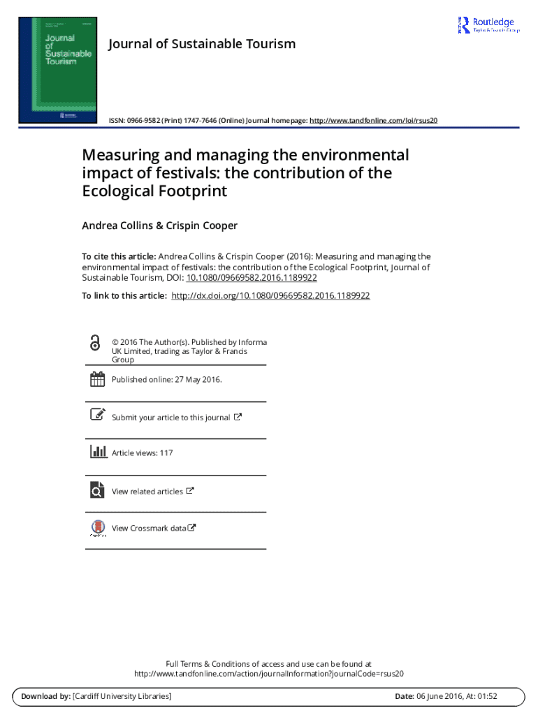Journal of Sustainable TourismISSN: 09669582 (Print) 17477646 (Online) Journal homepage: http://www.tandfonline.com/loi/rsus20Measuring and managing the environmental impact of festivals: the contribution