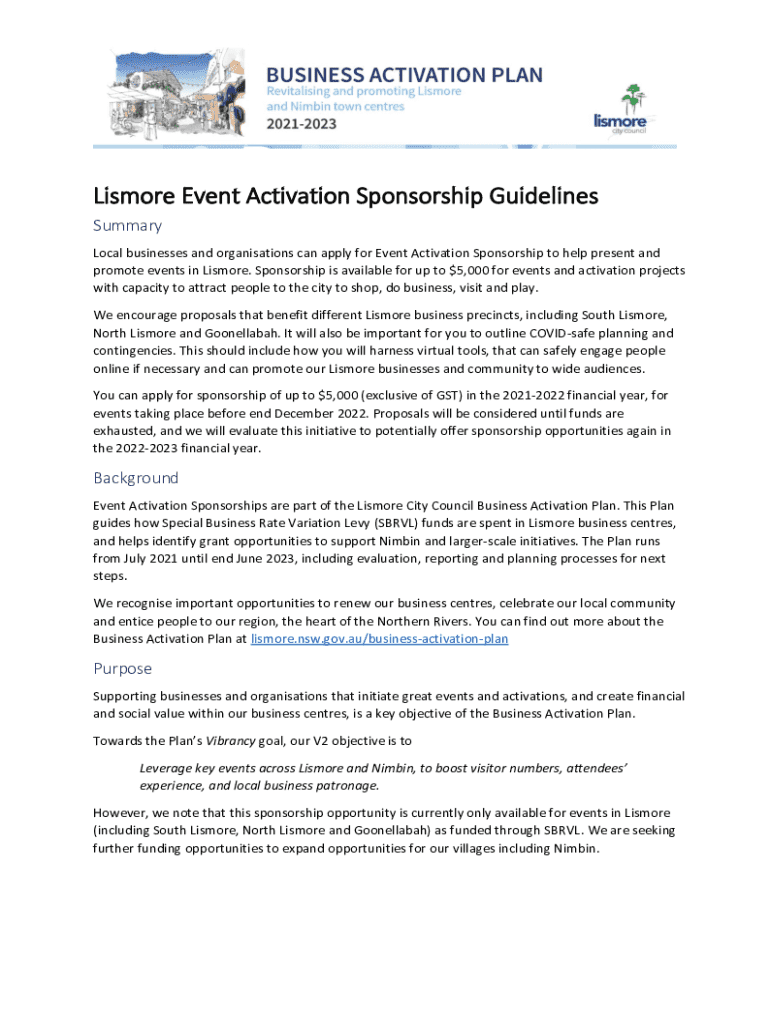 Get the free Lismore Event Activation Sponsorship Guidelines