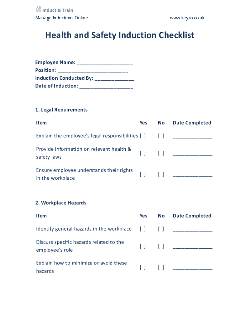 Get the free Health and Safety Induction Checklist