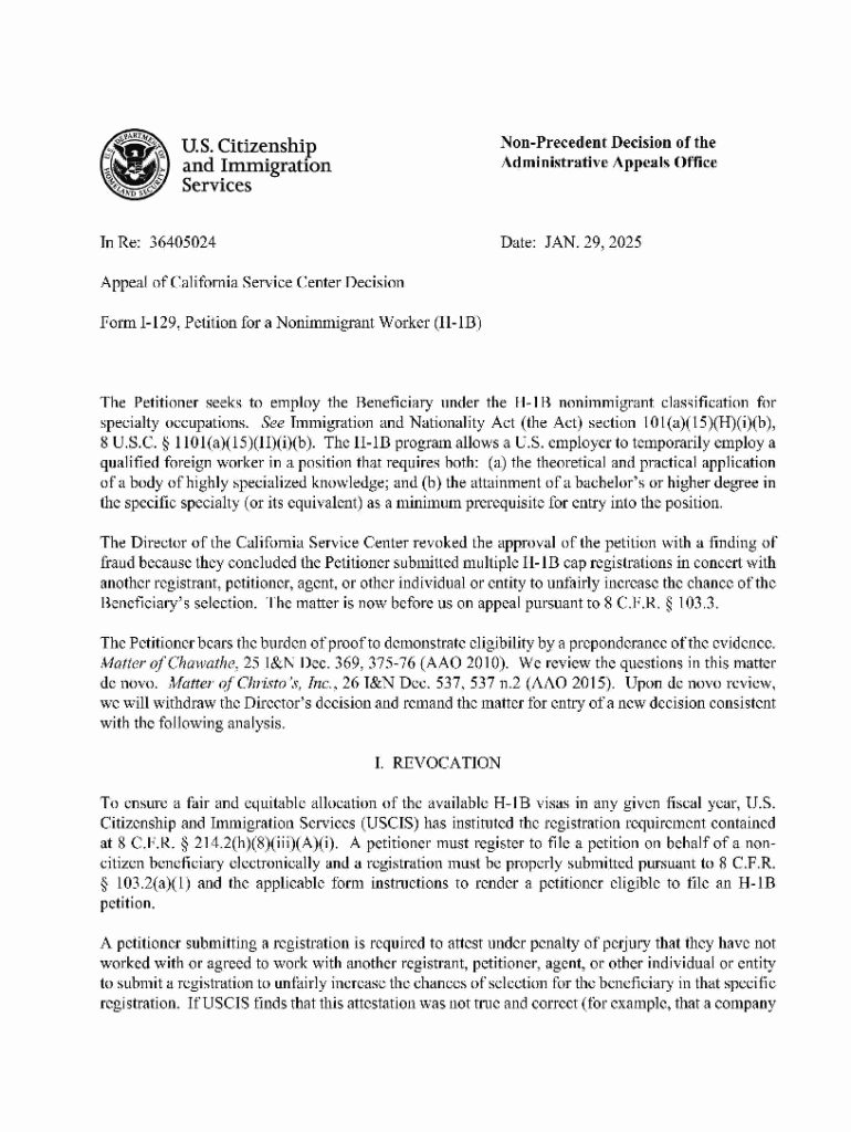 Get the free Non-precedent Decision of the Administrative Appeals Office