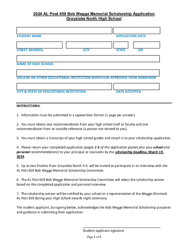 Get the free 2024 Al Post 659 Bob Wegge Memorial Scholarship Application