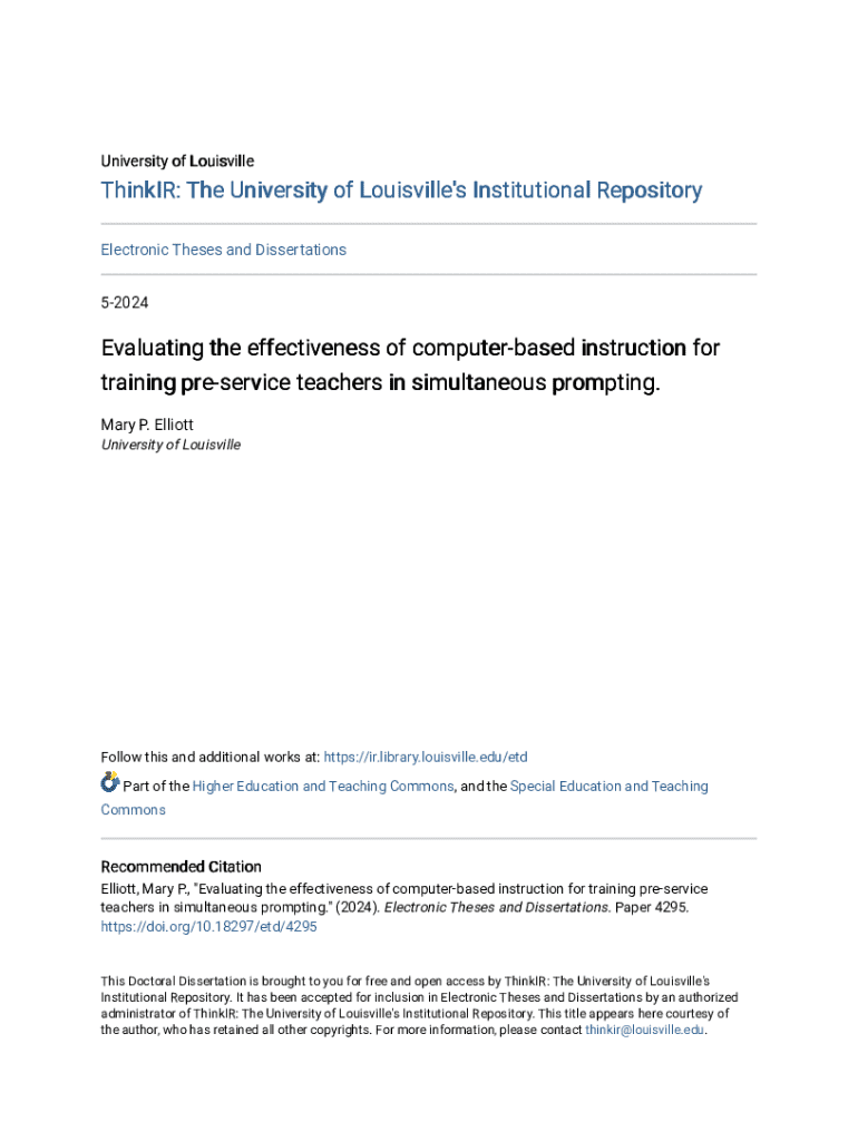 University of LouisvilleThinkIR: The University of Louisville\'s Institutional Repository Electronic Theses and Dissertations 52024Evaluating the effectiveness of computerbased instruction for training