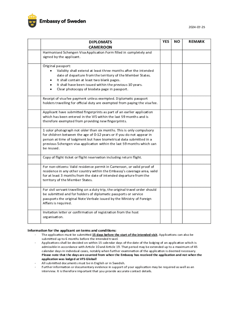 This is a visa application form for individuals applying for a Schengen Visa. The form outlines the necessary documentation required, such as passport details, visa fee payment receipts, biometric