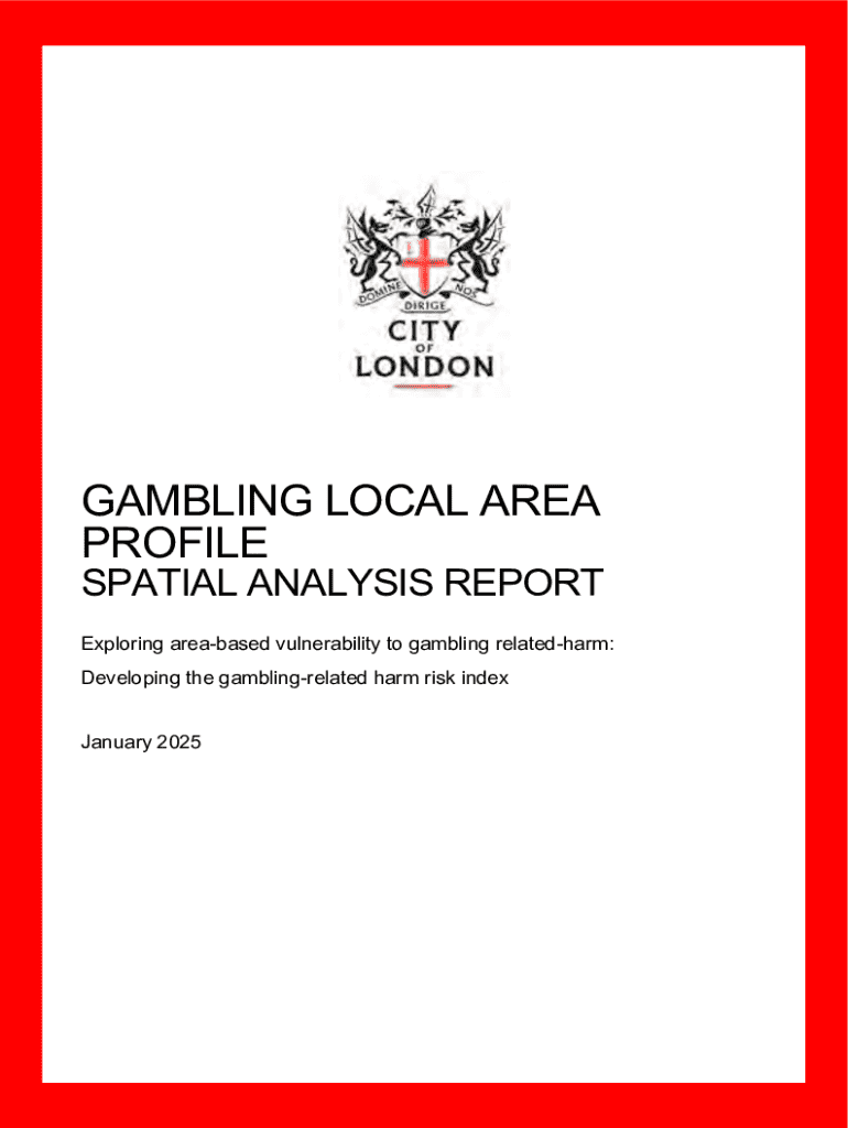 GAMBLING LOCAL AREA PROFILESPATIAL ANALYSIS REPORT Exploring areabased vulnerability to gambling relatedharm: Developing the gamblingrelated harm risk index January 20251ContentsPageExecutive Summary41.Introduction51.1Overview52.Background62.1Aims
