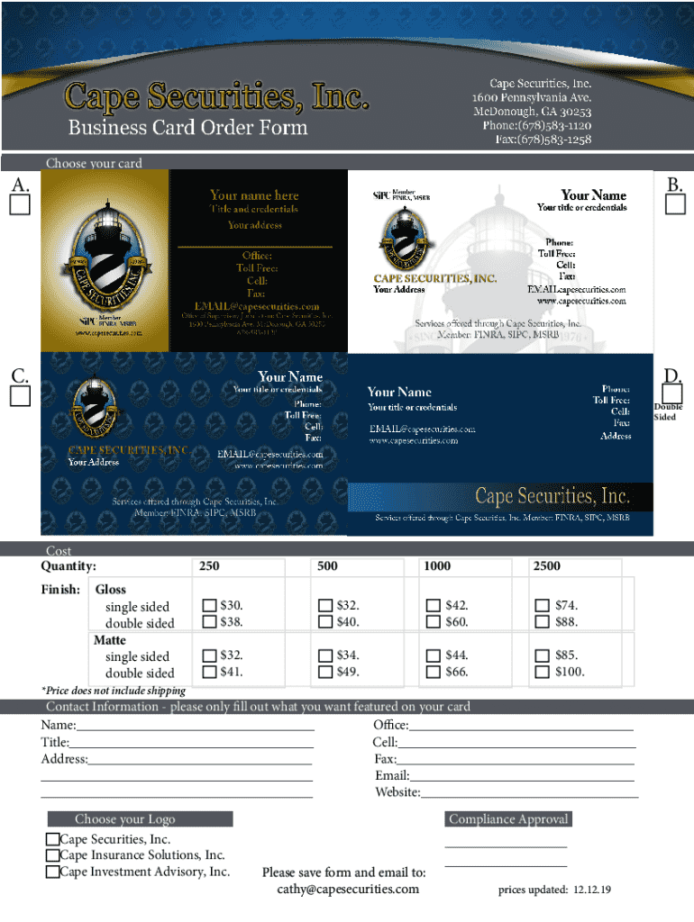 Get the free FOR CAPE SECURITIES INC