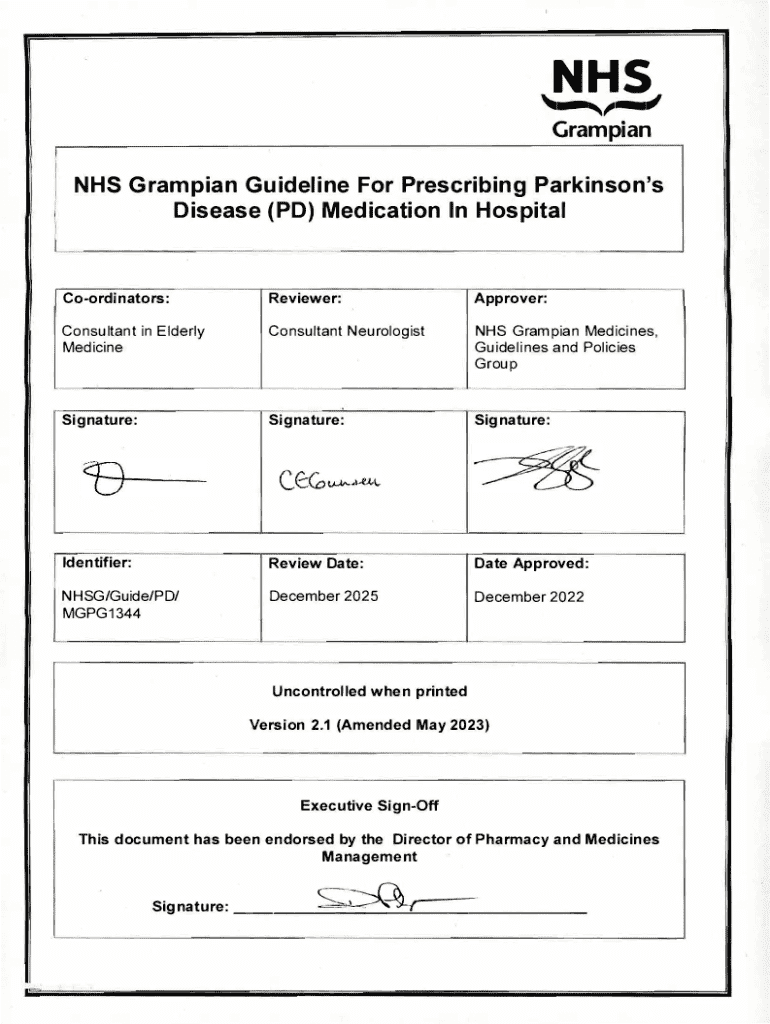 Get the free NHS Grampian Guideline For Prescribing Parkinson's