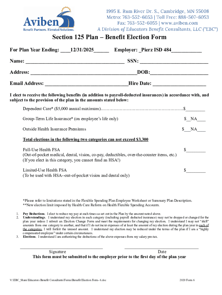 Get the free Benefit Election Form