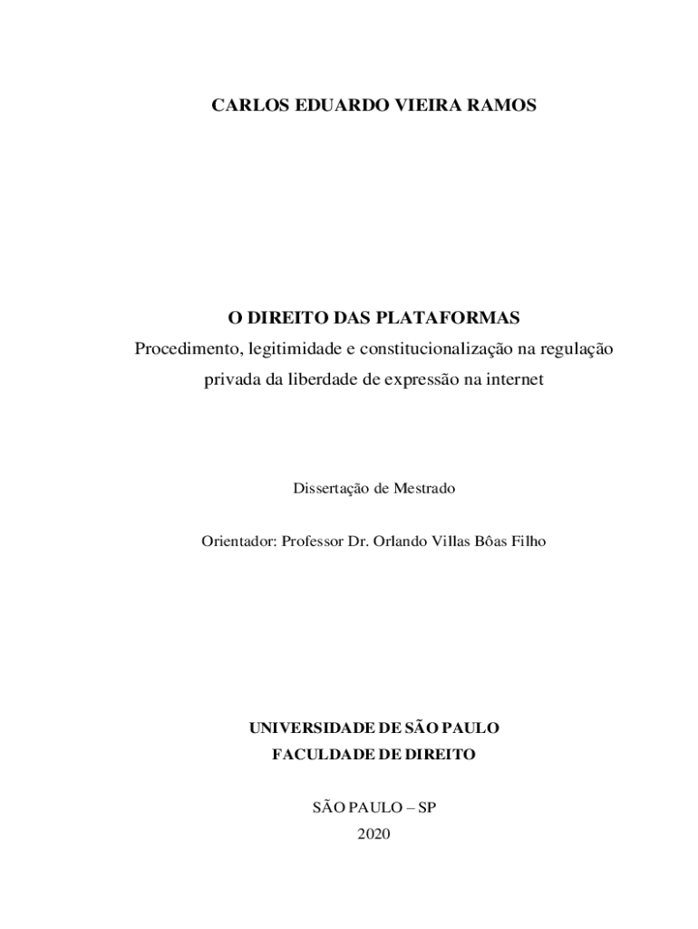 CARLOS EDUARDO VIEIRA RAMOSO DIREITO DAS PLATAFORMAS Procedimento, legitimidade e constitucionalizao na regulao privada da liberdade de expresso na internetDissertao de MestradoOrientador: Professor