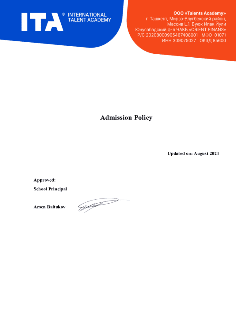 Get the free Admission Policy