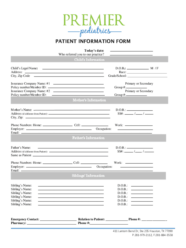To fill out a patient information form, patients should carefully read each question, provide accurate details regarding their personal and health information, and sign where required.