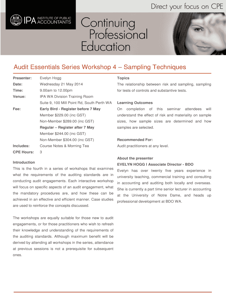 Get the free Audit Essentials Series Workshop 4 Sampling Techniques - publicaccountants org