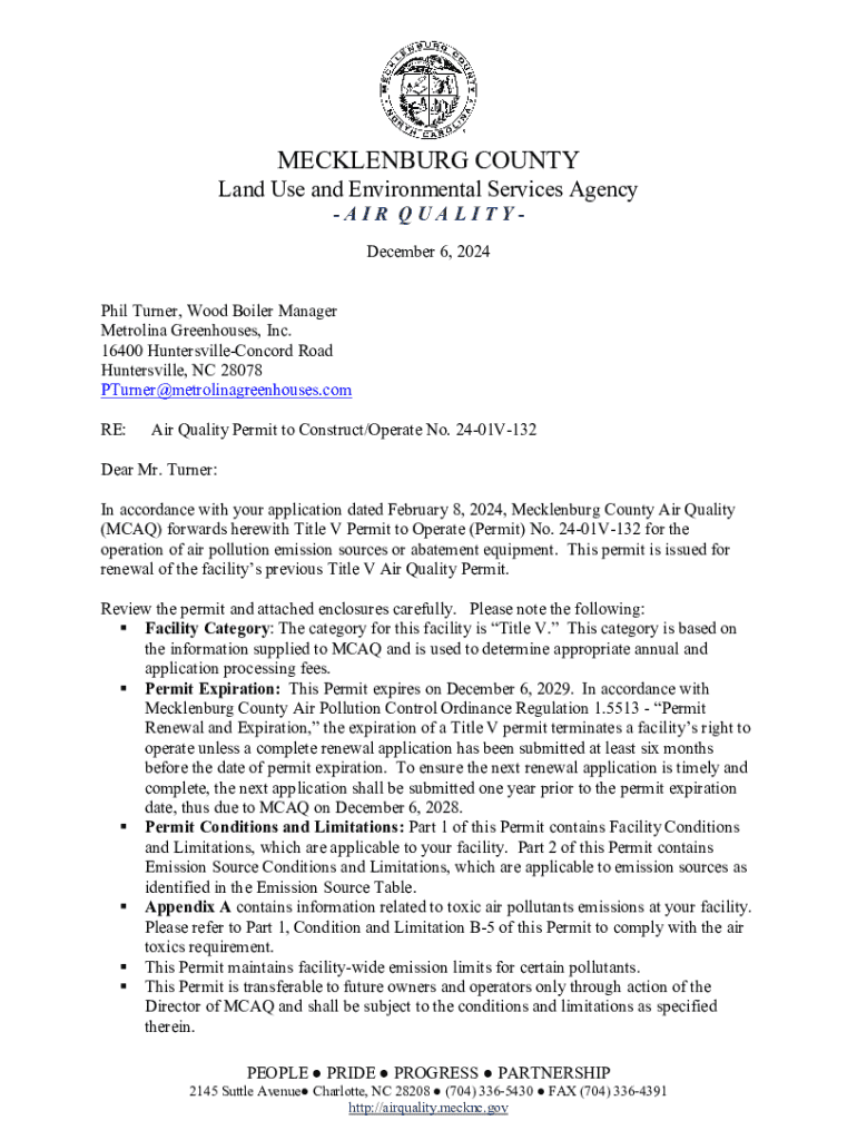 Get the free Air Quality Permit to Construct/operate No. 24-01v-132