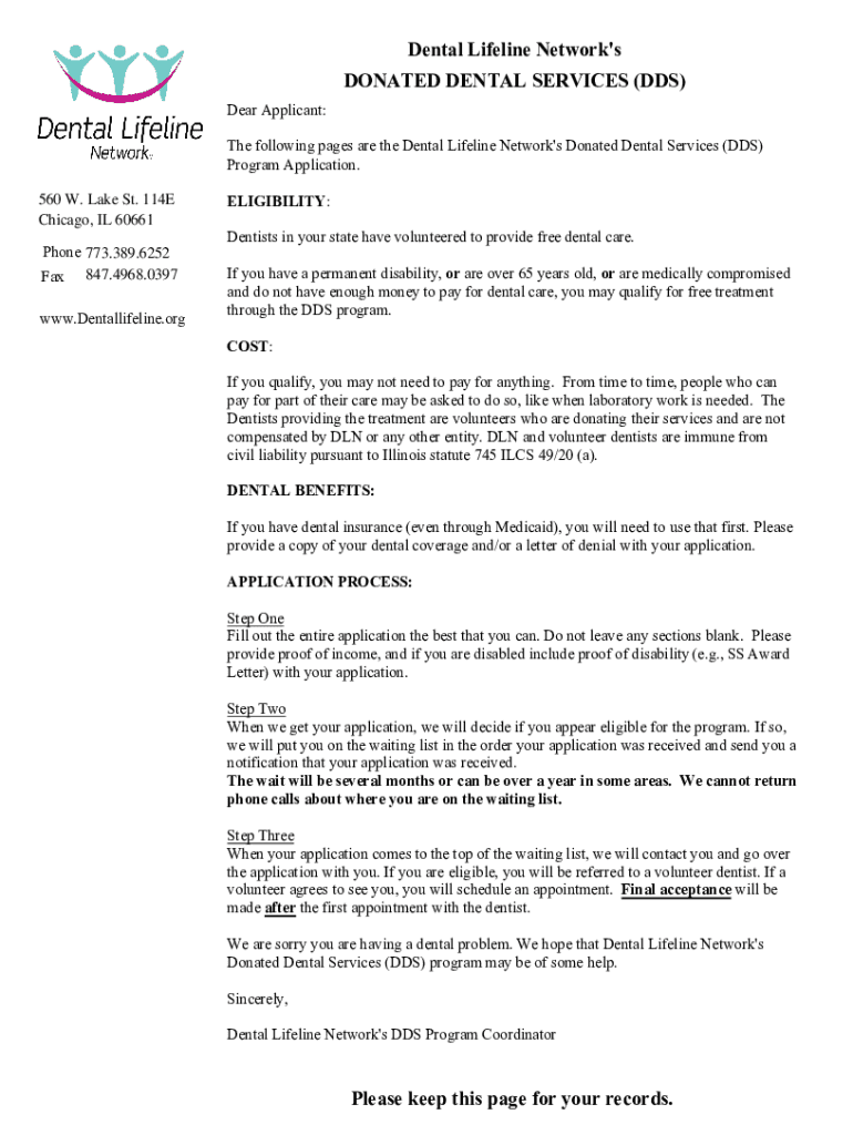 Get the free Dental Lifeline Network's Donated Dental Services (dds) Program Application
