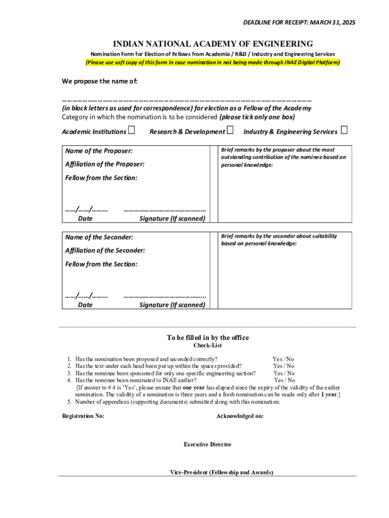 Edit nomination form for election. Rearrange and rotate pages, insert new and alter existing texts, add new objects, and take advantage of other helpful tools. Click Done to apply changes and return to your Dashboard. Go to the Documents tab to access merging, splitting, locking, or unlocking functions.