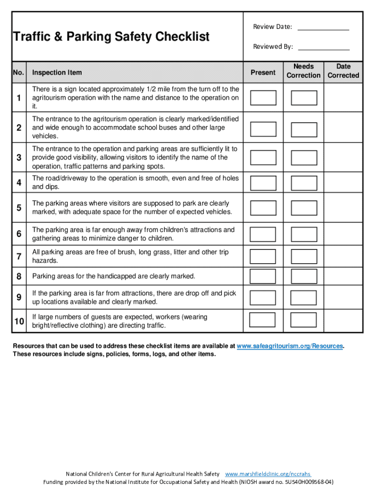 Obtain a copy of the traffic parking safety checklist form.