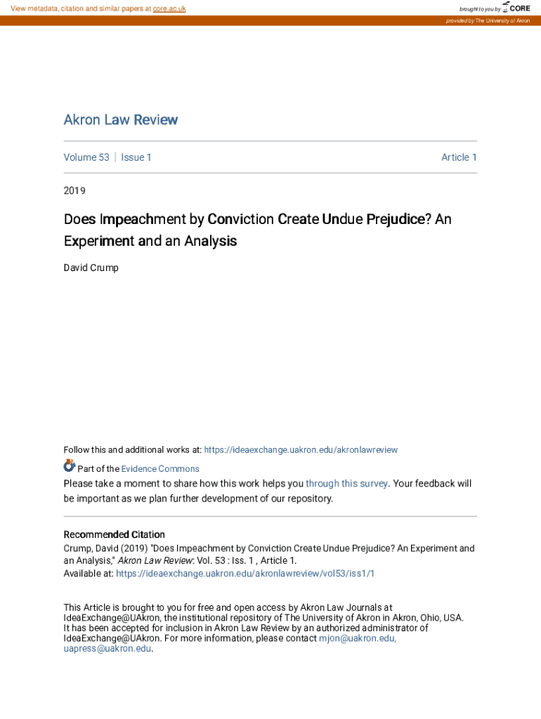 View metadata, citation and similar papers at core.ac.ukbrought to you byCOREprovided by The University of AkronAkron Law Review Volume 53Issue 1Article 12019Does Impeachment by Conviction Create