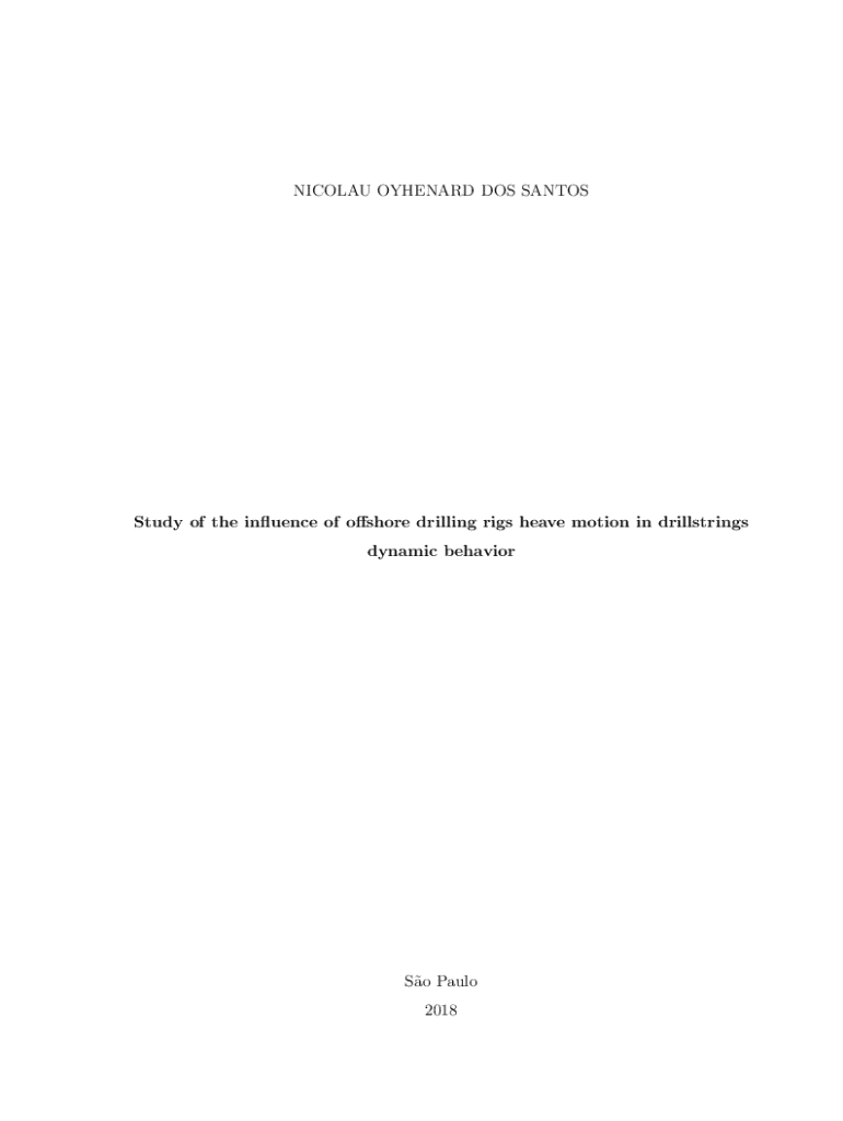 NICOLAU OYHENARD DOS SANTOSStudy of the influence of offshore drilling rigs heave motion in drillstrings dynamic behaviorSao Paulo 2018NICOLAU OYHENARD DOS SANTOSStudy of the influence of offshore