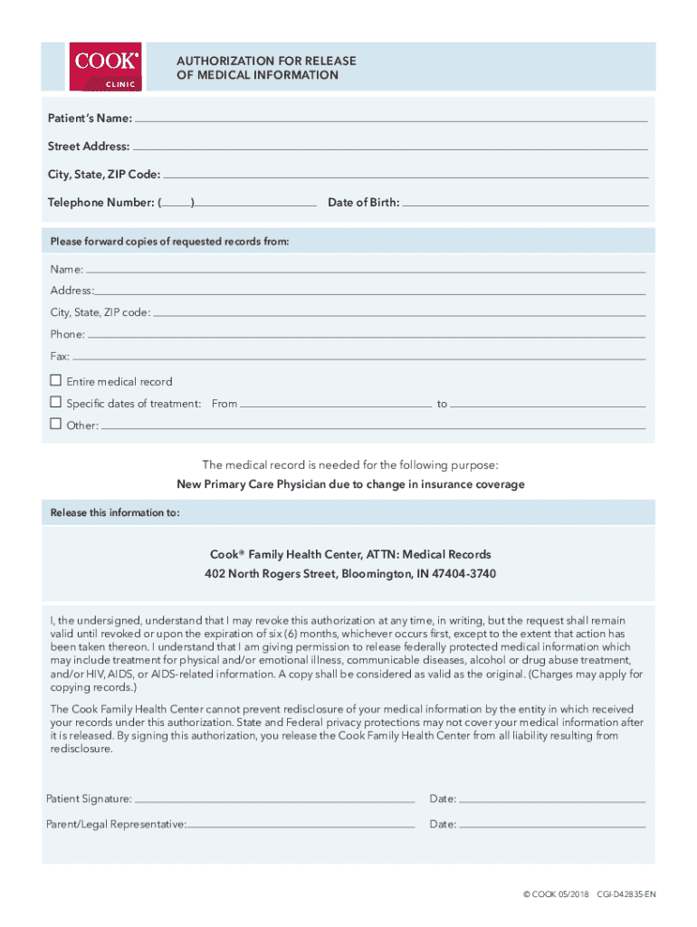 Get the free Authorization for Release of Medical Information