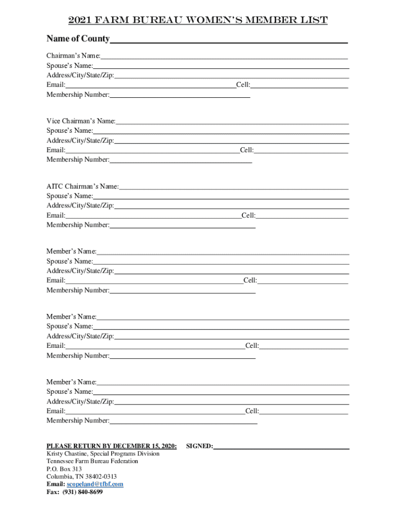 Get the free 2021 Farm Bureau Women’s Member List