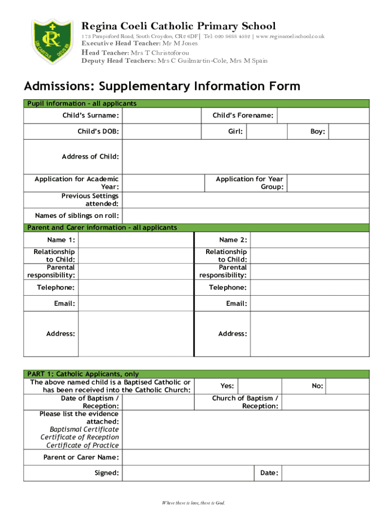 Get the free Admissions Supplementary Information Form