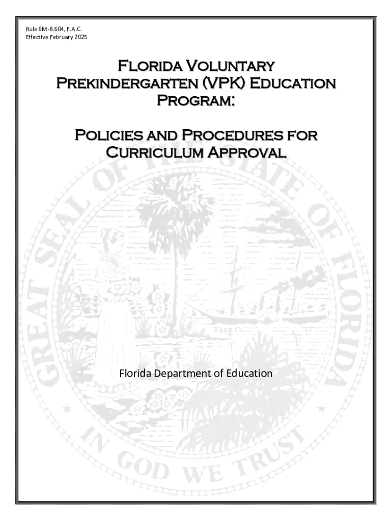 Este documento contiene las políticas y procedimientos aprobados por el Departamento de Educación de Florida para la revisión de los planes de estudio presentados para el Programa de Educación