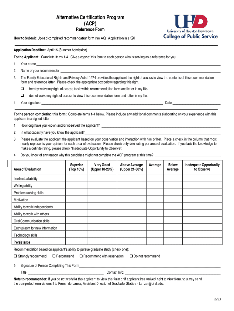 Get the free Alternative Certification Program Reference Form