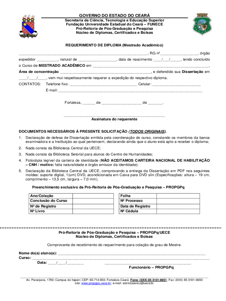 Obtenha o gratuito Requerimento De Diploma (mestrado Acadêmico)