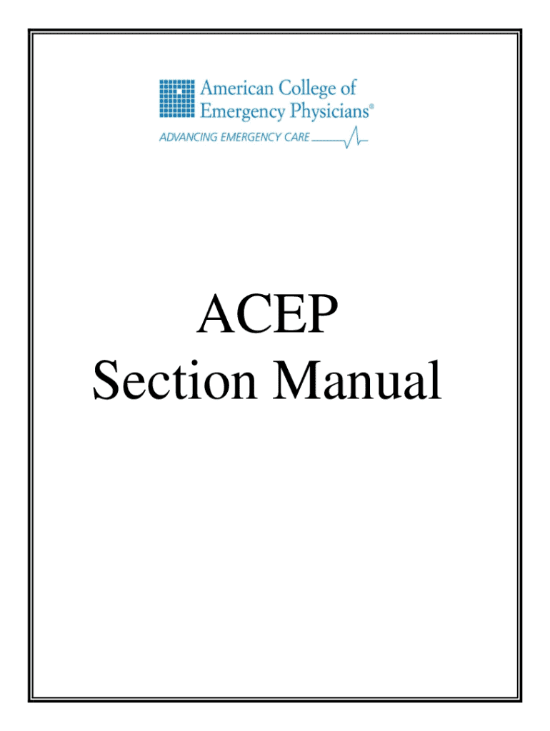 The ACEP Section Manual is a document that outlines the guidelines and procedures for managing specific sections within the American College of Emergency Physicians (ACEP). It serves as a reference for section leaders and members.