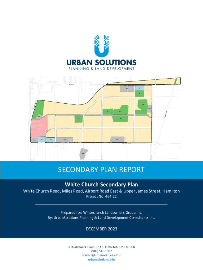 This report presents the Secondary Plan for the White Church Road Urban Expansion Area in Hamilton, outlining objectives, planning processes, consultations, and supporting studies to develop a complete