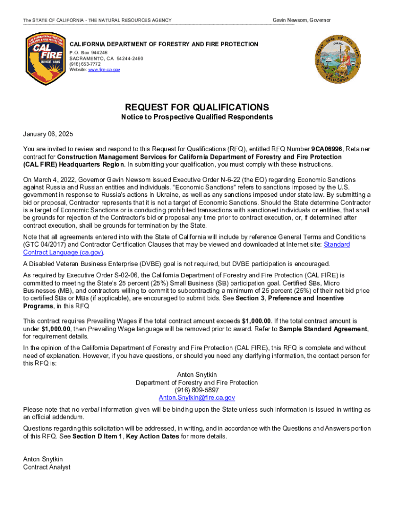 The STATE OF CALIFORNIA THE NATURAL RESOURCES AGENCY Gavin Newsom, Governor ___CALIFORNIA DEPARTMENT OF FORESTRY AND FIRE PROTECTION P.O. Box 944246 SACRAMENTO, CA 942442460 (916) 6537772 Website: