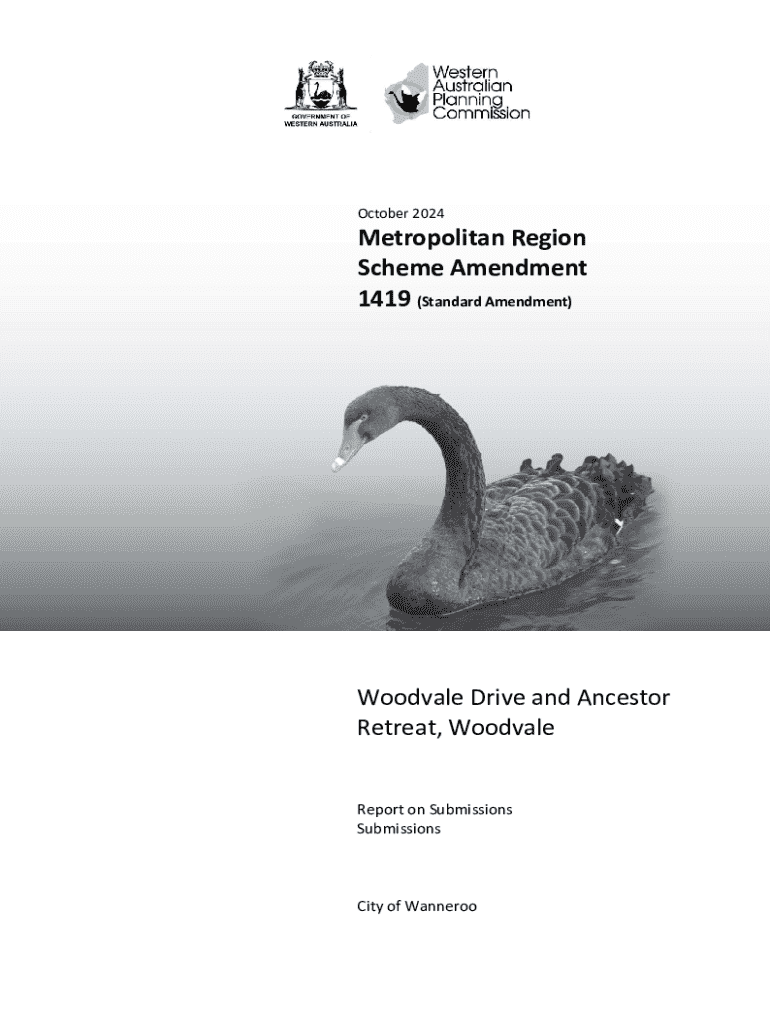 October 2024Metropolitan Region Scheme Amendment 1419 (Standard Amendment)Woodvale Drive and Ancestor Retreat, Woodvale Report on Submissions SubmissionsCity of WannerooMetropolitan Region Scheme